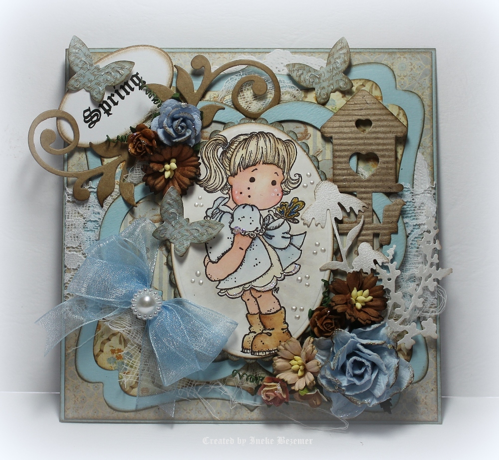 Ik heb allereerst de mooie vlinderrand 6002/0251 gebruikt. Verder een nieuwe vierkante mal 6002/0173 en de mooie swirl 6002/0163. Ook de clearstamp is een tekst van JoyCrafts 6410/0018.